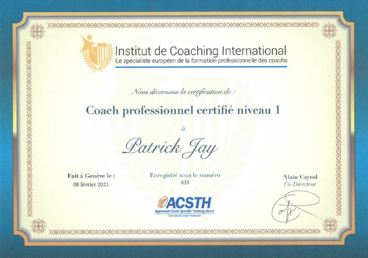 Le cycle d'études et d'entraînements de 9 mois, portant sur tous les outils du coaching et les règles de mise en oeuvre déontologiques et juridiques, est la garantie pour vous d'un accompagnement à la fois raisonné et efficace dans votre projet.